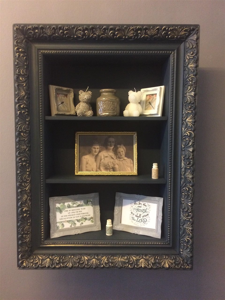 Police ve starožitném zdobeném celodřevěném rámu